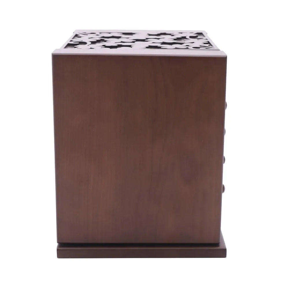 Son allure sobre et naturelle sublime un espace nuit, un dressing ou une coiffeuse. La teinte boisée évoque la chaleur d’un intérieur soigné, tandis que les lignes nettes apportent une touche contemporaine discrète. Cette boîte devient une pièce de décoration à part entière.