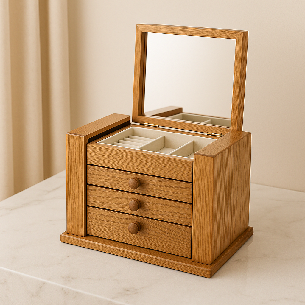 Boîte à bijoux en bois à 4 tiroirs avec miroir – Élégance et organisation au quotidien