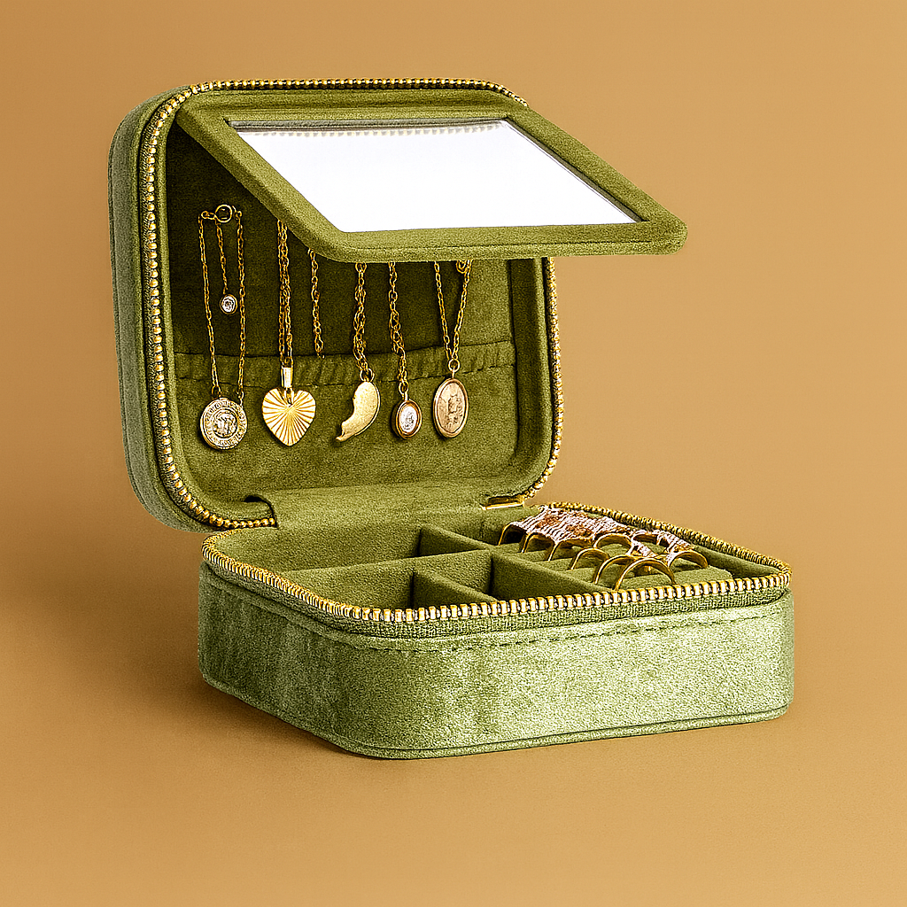 À la maison ou en voyage, cette boîte à bijoux transforme le rangement en un geste doux et intentionnel. Elle protège vos essentiels avec tendresse et ajoute une touche de poésie à votre quotidien.